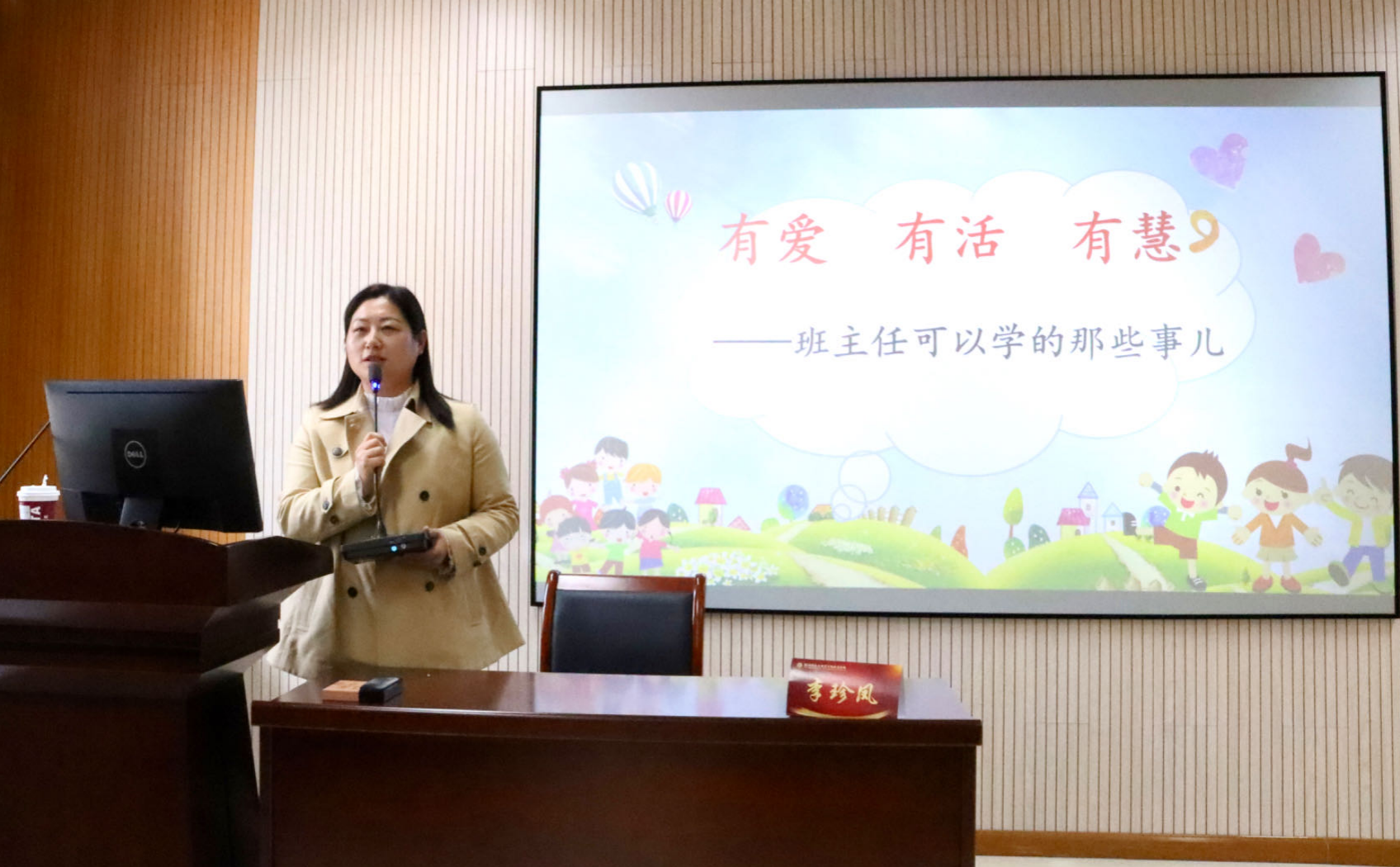 4月10日下午,长兴县实验小学李珍凤老师应邀为桃花族论坛 教育硕士开展了一场题为《有爱有活有慧—班主任可以学的那些事儿》的专题讲座。李珍凤老师作为高级教师,所带班级多次被评为市、县先进班集体,个人曾获“县十佳班主任楷模”等多项荣誉称号,同时拥有丰富的理论和实践经验。风雨兼程二十余载,李珍凤老师用鼓励与赞美唤醒孩子内心真善美的种子。