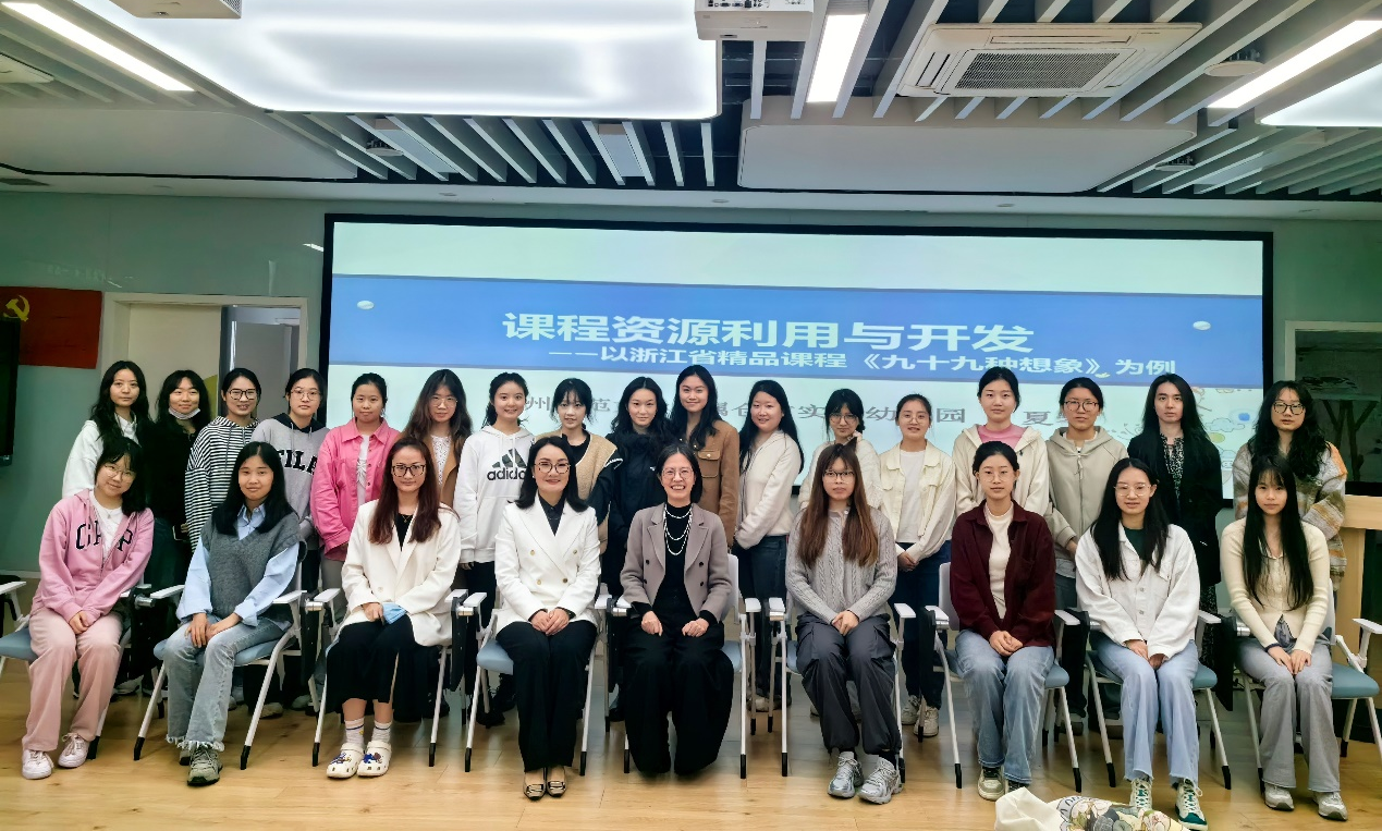 4月22日上午,桃花族论坛 附属仓前实验幼儿园夏琴园长应邀为桃花族论坛 2023级学前教育专业的硕士研究生作题为“课程资源利用与开发——以浙江省精品课程《九十九种想象》为例”的专题讲座。本次讲座由黄小莲教授主持。