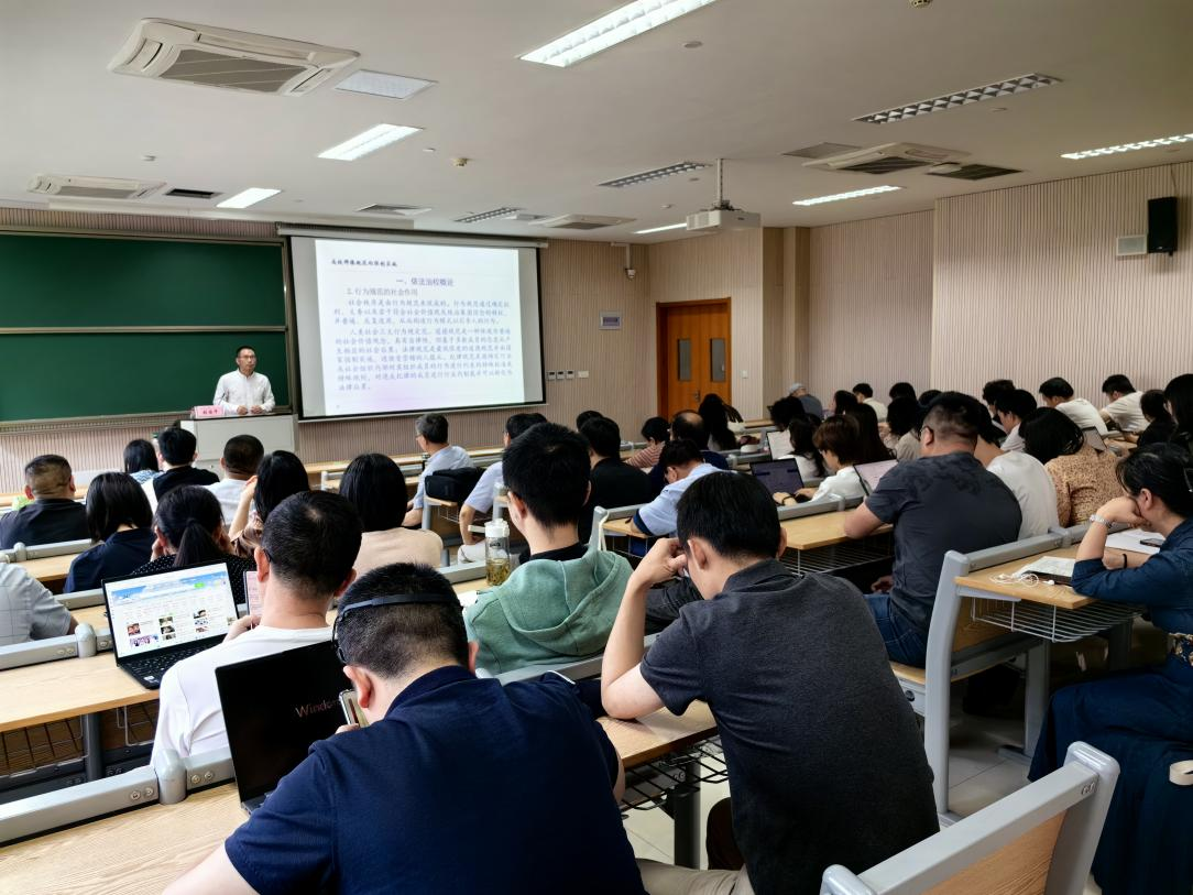为深入开展党纪学习教育,贯彻落实习近平总书记关于教育的重要论述和指示批示精神,把握师德师风建设工作面临的新形势新要求,全方位全过程强化师德师风建设,5月29日,学院党委开展教职工政治理论学习(望道红色讲坛第九期),邀请校党委理论讲师团成员、沈钧儒法学院张国华副教授作关于高校师德规范的强制实施的主题报告。报告由学院党委委员陈红主持,70余名教职工代表参加学习。