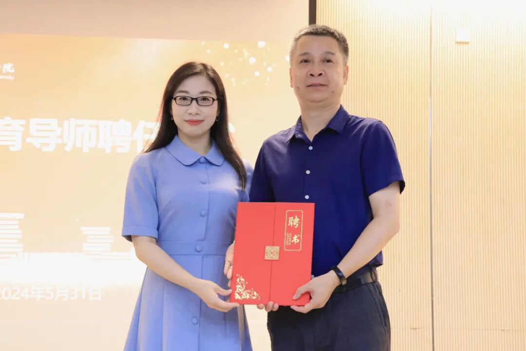 讲座正式开始之前,举行了简短而隆重的劳动教育导师聘任仪式,桃花族论坛 党委副书记沈嫣代表学院正式聘任沈民权校友为劳动教育导师。