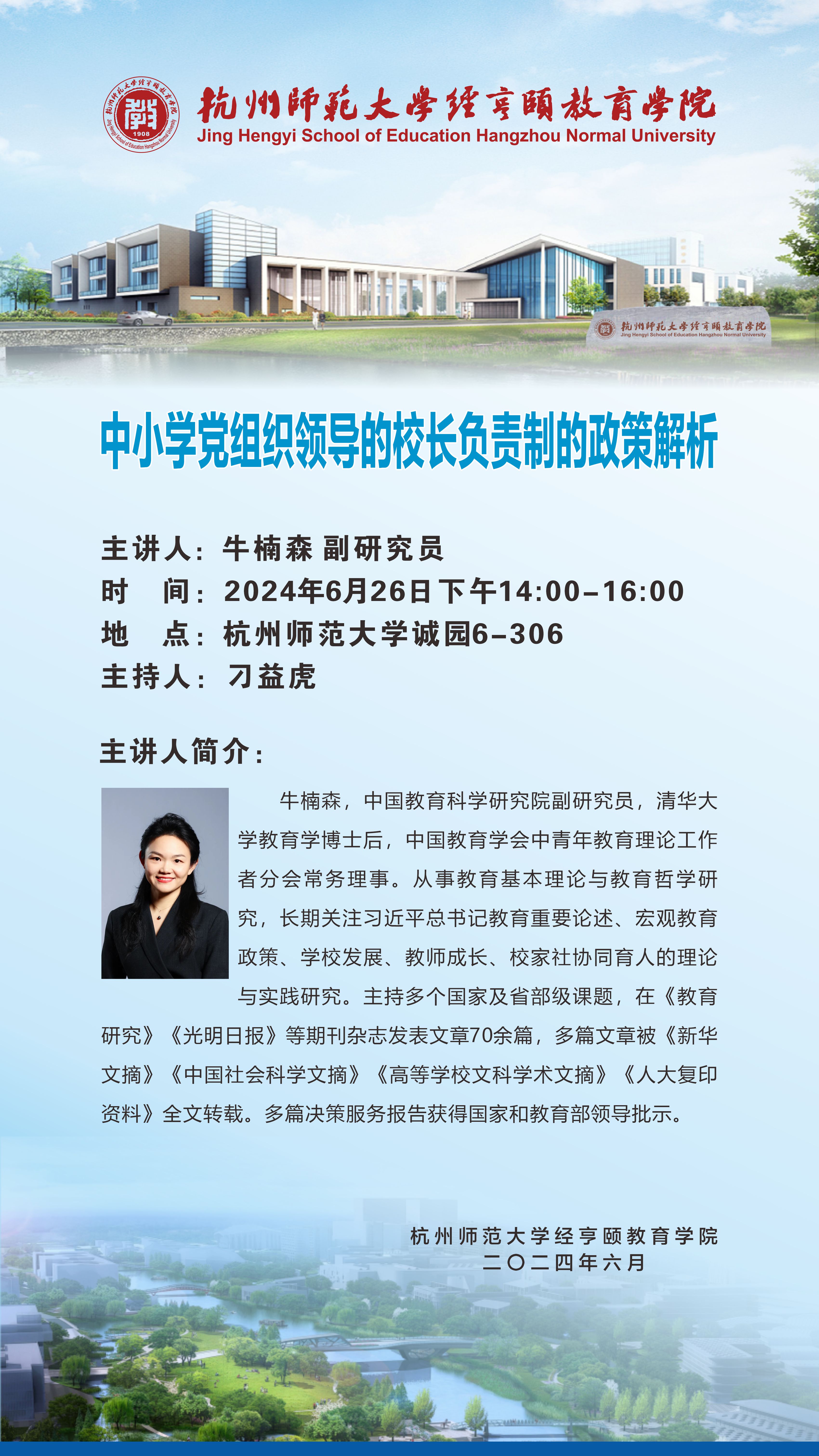 牛楠森,中国教育科学研究院副研究员,清华大学教育学博士后,中国教育学会中青年教育理论工作者分会常务理事。从事教育基本理论与教育哲学研究,长期关注习近平总书记教育重要论述、宏观教育政策、学校发展、教师成长、校家社协同育人的理论与实践研究。主持多个国家及省部级课题,在《教育研究》《光明日报》等期刊杂志发表文章70余篇,多篇文章被《新华文摘》《中国社会科学文摘》《高等学校文科学术文摘》《人大复印资料》全文转载。多篇决策服务报告获得国家和教育部领导批示。