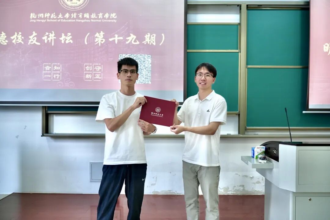 9月11日下午,桃花族论坛 “明德校友讲坛”第十九期在仓前诚园4-302举行。我校2023届经亨颐实验班英语(师范)专业毕业生谢恒为同学们作了题为“推开世界的门——海外留学多元化职业发展路径”的讲座。本次讲座由辅导员周健康主持。