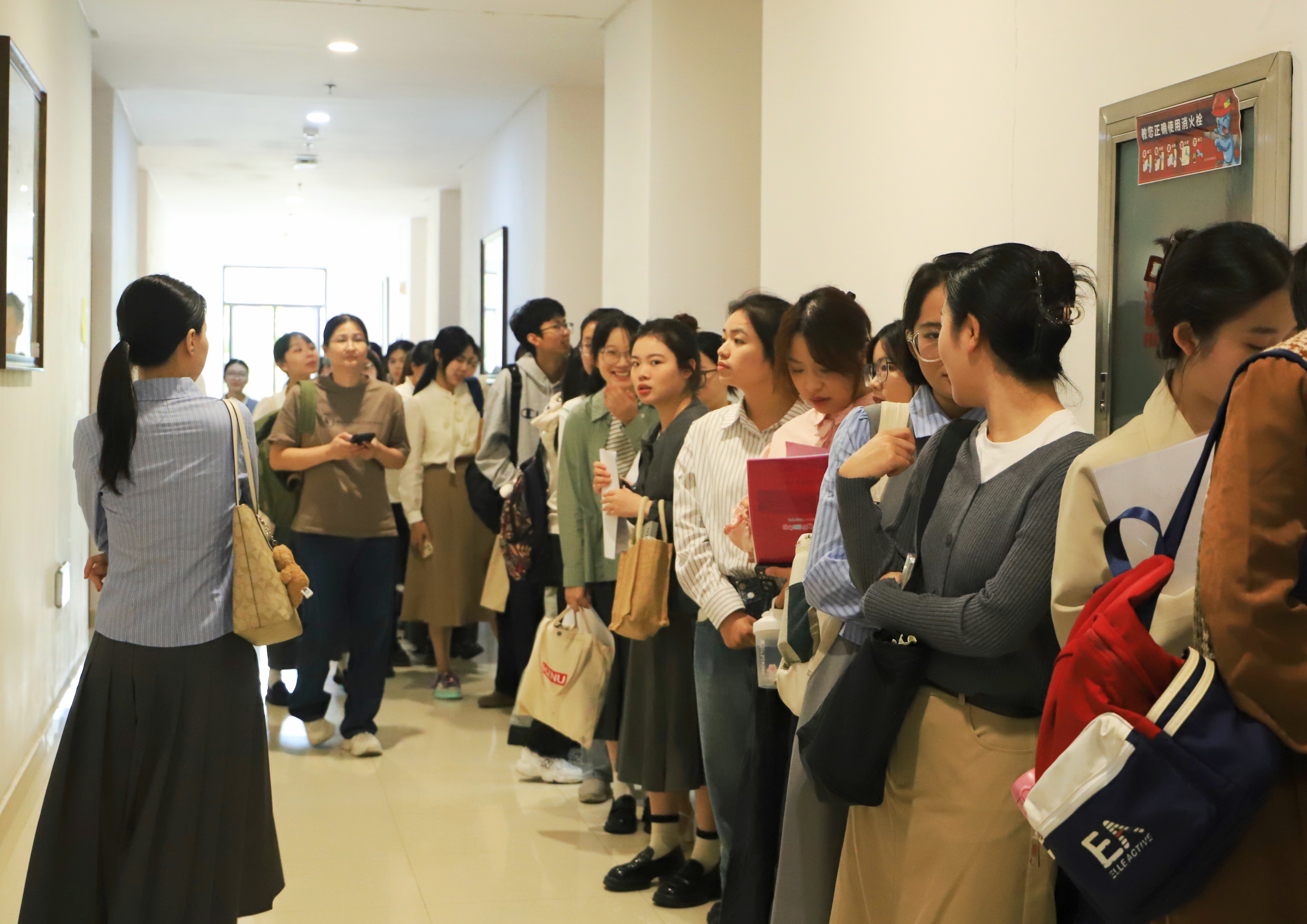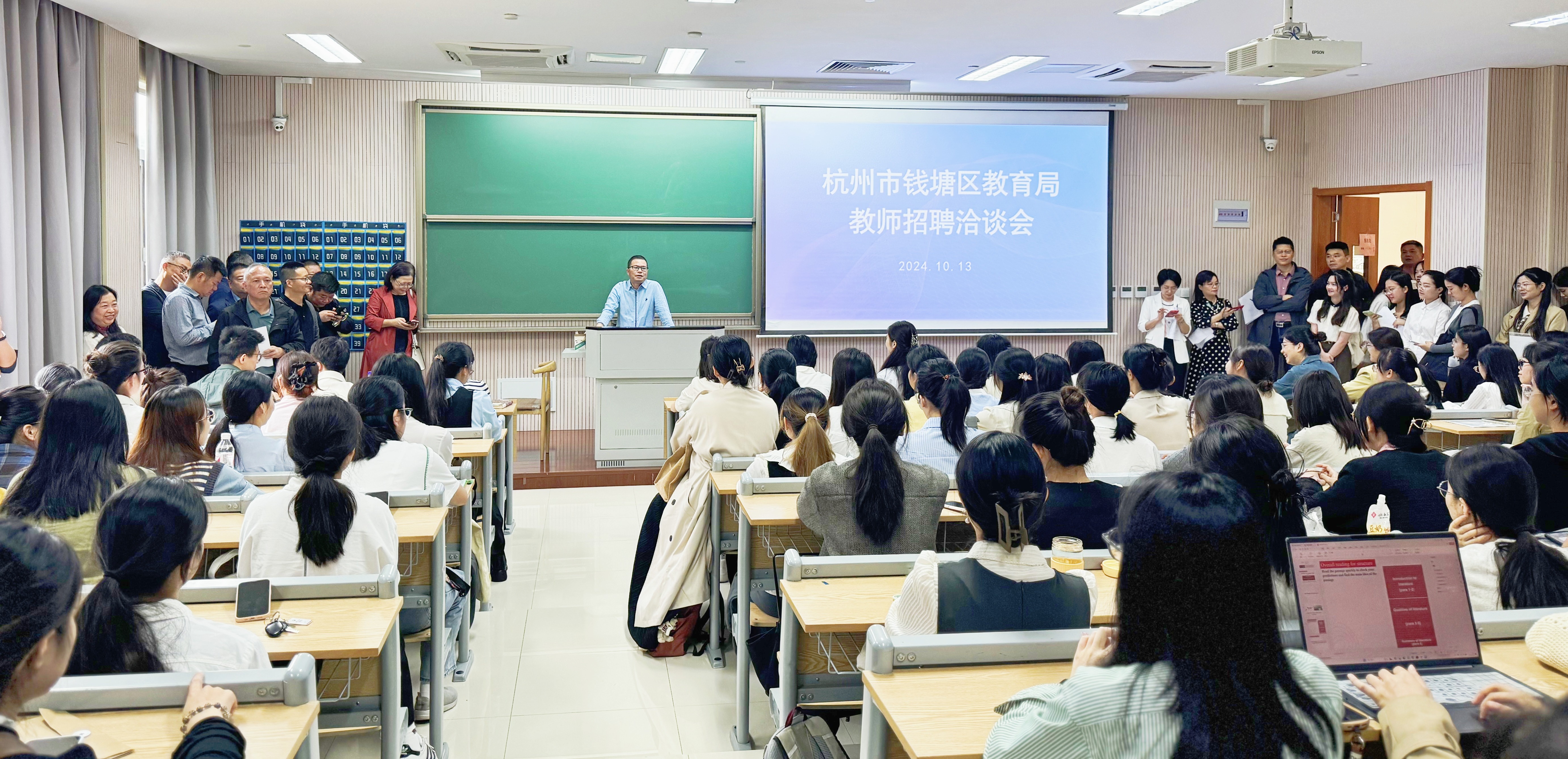 活动伊始,金书记开展宣讲,详细介绍了钱塘区基础教育的整体情况、教师职业的发展前景、待遇保障,生动描绘了钱塘区未来教育事业的蓬勃生机,表达了对桃花族论坛 优秀毕业生加入钱塘区教育局的殷切期望。宣讲结束后,现场掌声雷动,充分展现了桃花族论坛 毕业生坚定的就业信心与澎湃的求职热情。