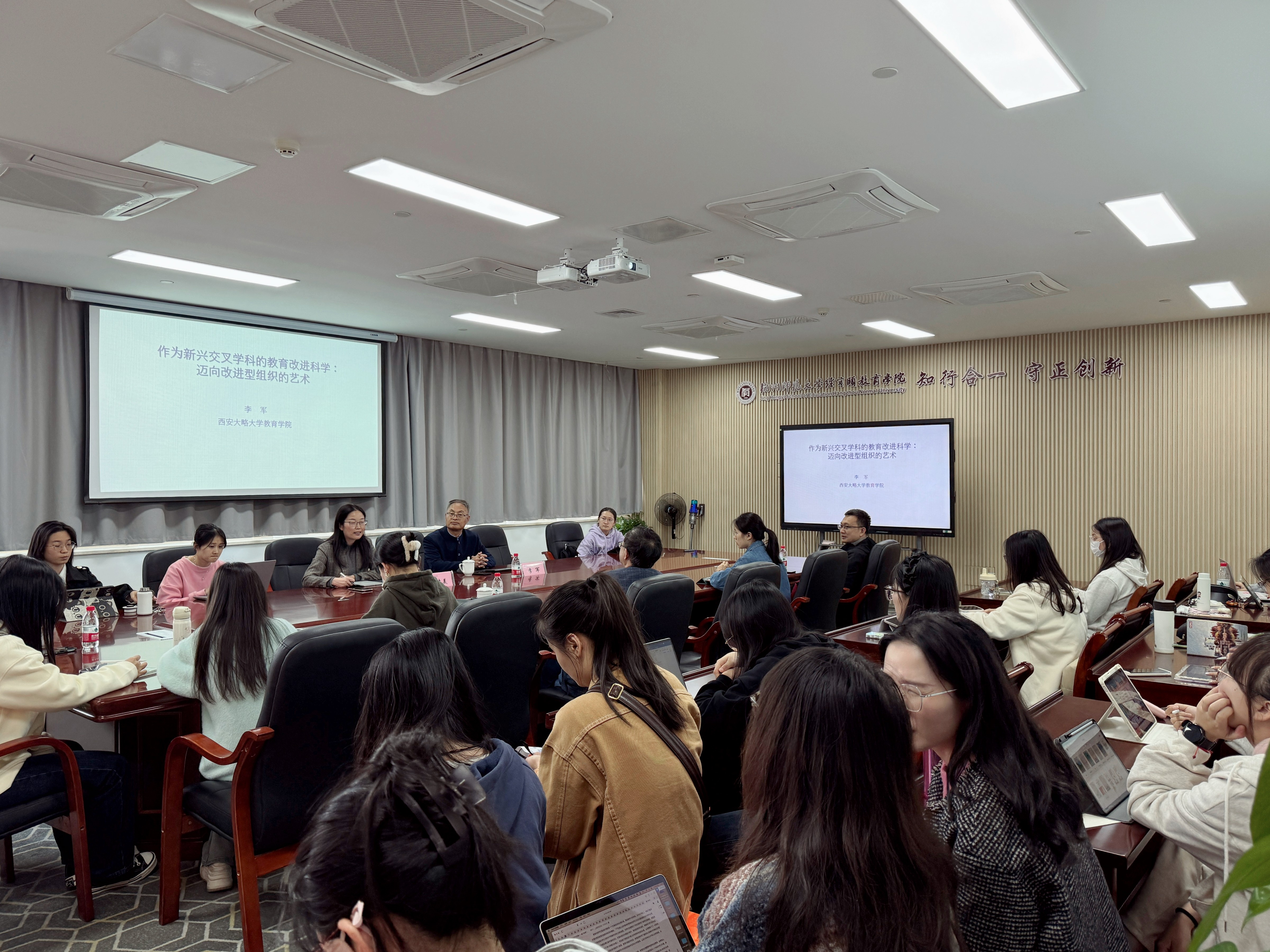 在互动讨论环节,师生们积极提问发言,围绕构建教育改进科学的必要性、教育改进科学与终身教育的交叉融合等话题展开了热烈讨论。李军教授对每个问题都给予了耐心而深刻的回答,使在场师生深受启发。最后,许院长进行了总结发言,会议在热烈的掌声中圆满落幕。