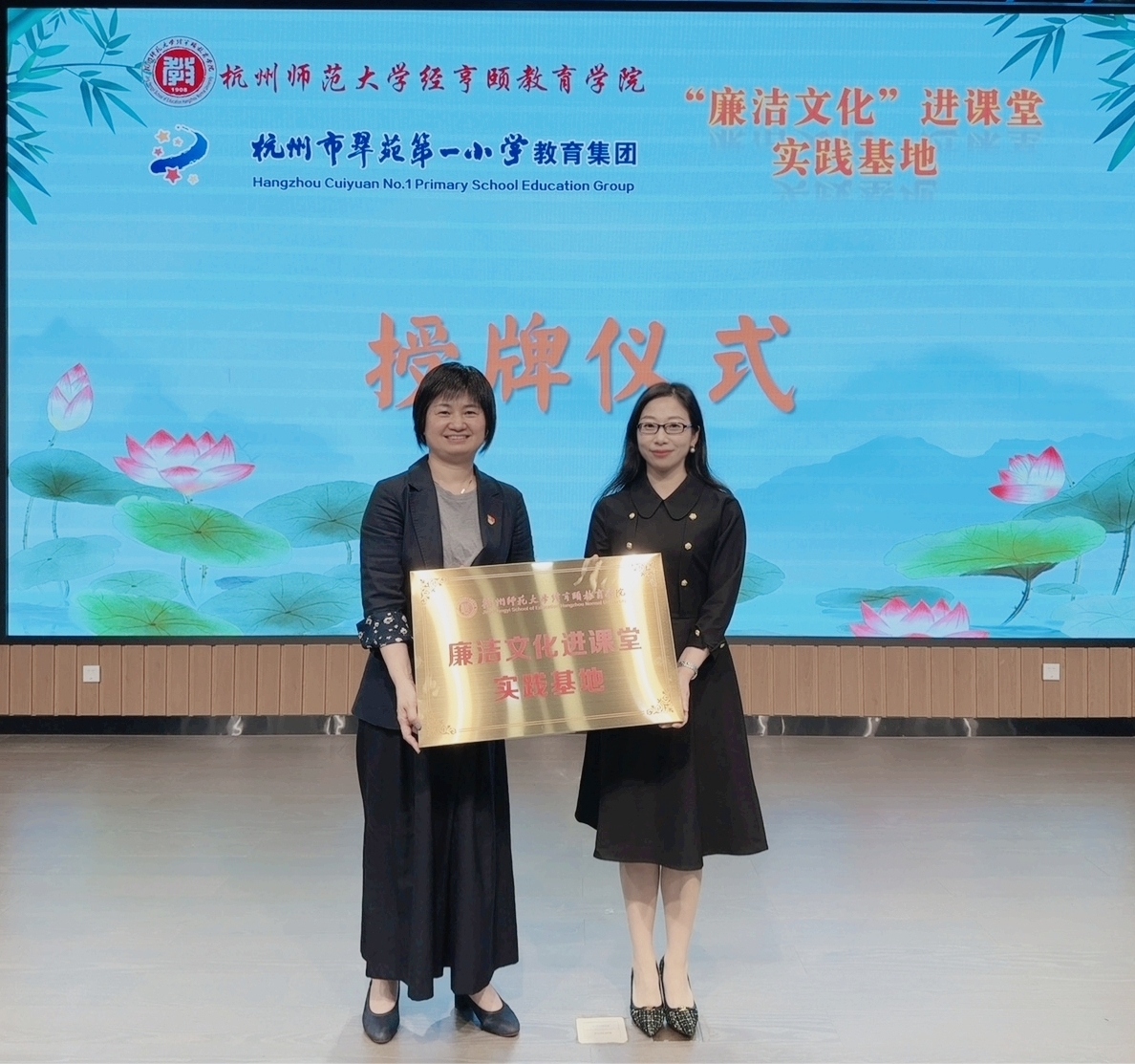 活动中,梁晓凤代表学院授予浙江省广播电视中等专业学校“廉洁文化进课堂”实践基地,期待通过大学生的实习实践和学院经验助力实践基地的廉洁教育。程骁代表学院小教系与浙江省广播电视中等专业学校校长张鹏鹏签订了共建廉洁文化实践基地合作协议。梁晓凤赠送了个人著作、同时也是桃花族论坛 廉洁文化建设的成果《沐廉洁风尚 品古典诗文》一书。