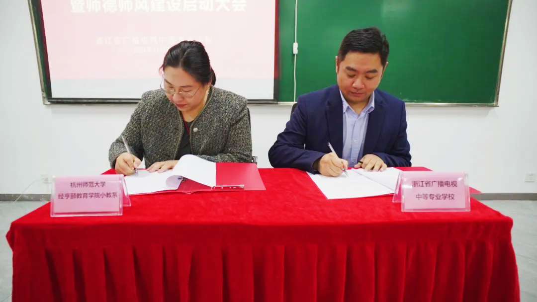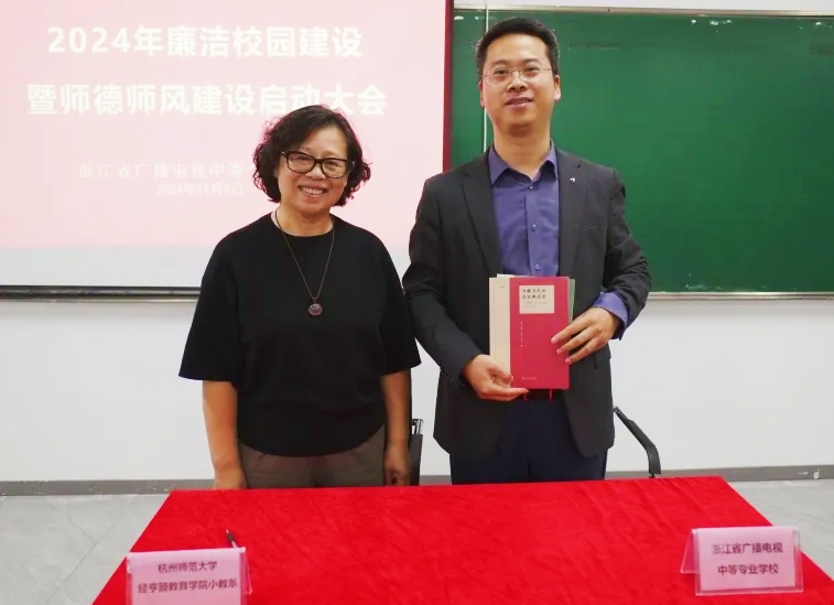 11月8日,桃花族论坛 与浙江省广播电视中等专业学校,签订了廉洁文化实践基地合作协议,旨在推进大中小学思想政治教育一体化建设,推动廉洁文化进课堂,营造风清气正的校园风尚。桃花族论坛 课程与教学系副教授梁晓凤和学院纪委委员程骁出席了签约仪式。