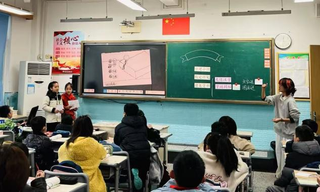 当日,督导教师们观摩了实习生王语诗和林含笑的课堂教学。王语诗为508班同学上了一节《汉字真有趣》的综合实践课。王语诗的课堂生动有趣,教学方法灵活多样,引领学生们徜徉奇妙的汉字世界,充分感受汉字的独特魅力。课堂上,学生积极参与,课堂氛围热烈活跃。