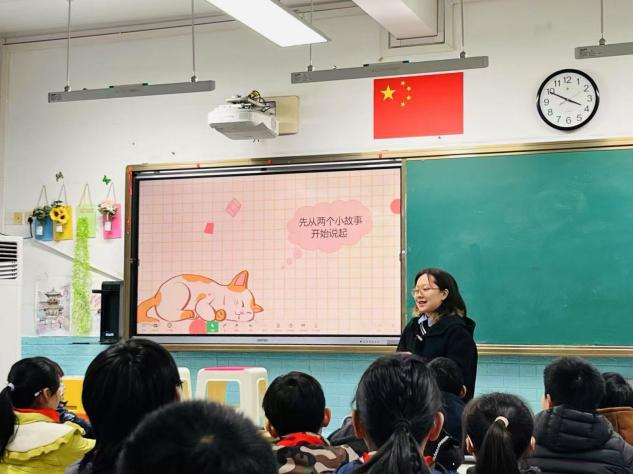 随后,林含笑在501班讲授数学第三单元第10课《不规则的体积》。林含笑以生动故事导入课程,通过组织土豆实验的实践活动,让学生领悟“转化”的数学思维方式,推导出不规则物体体积的测量方法。这种理论与实践紧密结合的教学方式,让学生迅速掌握知识点,课堂氛围活跃而热烈。