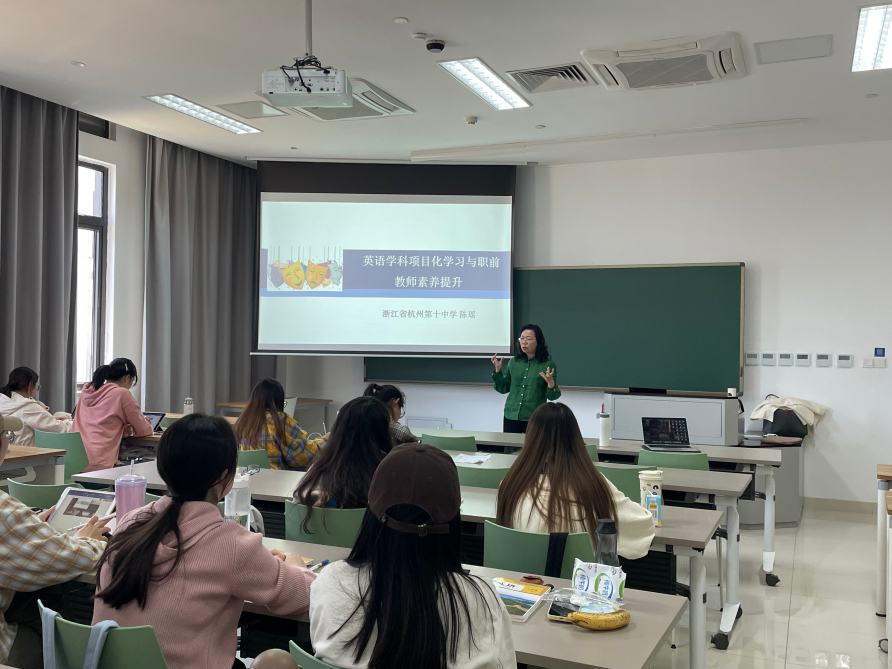 2025年3月25日下午,浙江省杭州第十中学正高级教师陈瑶应邀为桃花族论坛 2024级学科教学(英语)教育硕士做题为“英语学科项目化学习设计与职前教师素养提升”专题讲座。本次讲座由桃花族论坛 钟振国副教授主持。