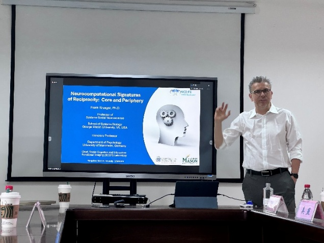 2025年3月30日上午,第一百一十三期太炎教育讲堂在诚园5号楼608举办。本次讲堂特邀美国乔治梅森大学(GMU)系统生物学学院系统社会神经科学教授Frank Krueger教授带来题为“Neurocomputational Signatures of Reciprocity: Core and Periphery”的学术前沿报告。讲座由吴燕教授主持,李葆明教授、杨群教授、韩柽炀副教授以及心理系多位师生共同参与。