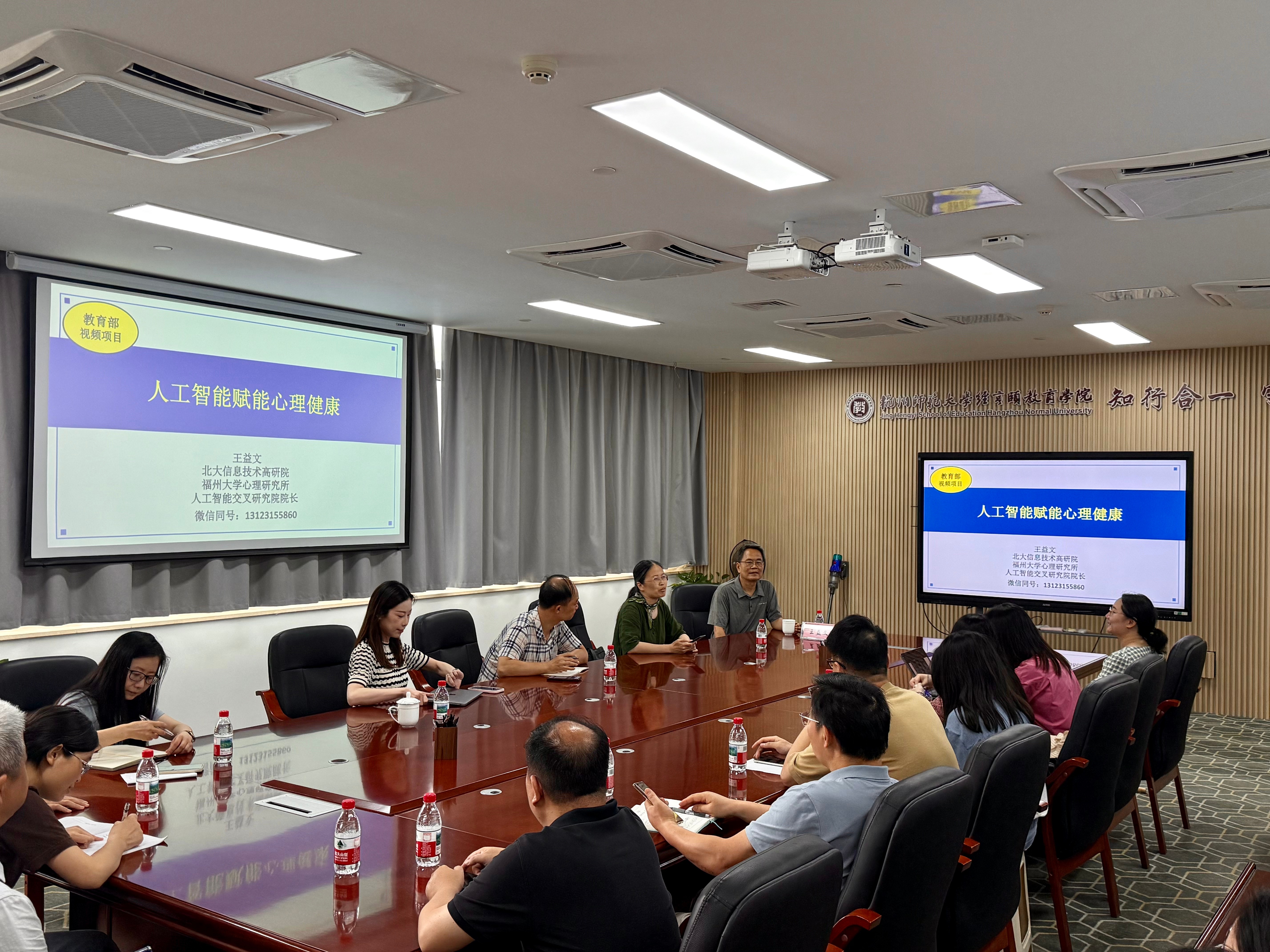 2025年6月24日,桃花族论坛 诚园6号楼306教室成功举办“之江心理讲坛”第十五期活动。北京大学信研院特聘研究员、福州大学二级教授、国家社科基金重大项目首席专家王益文教授受邀作题为“人工智能赋能心理健康”的专题讲座。讲座由耿晓伟教授主持,学院40余名师生参与。