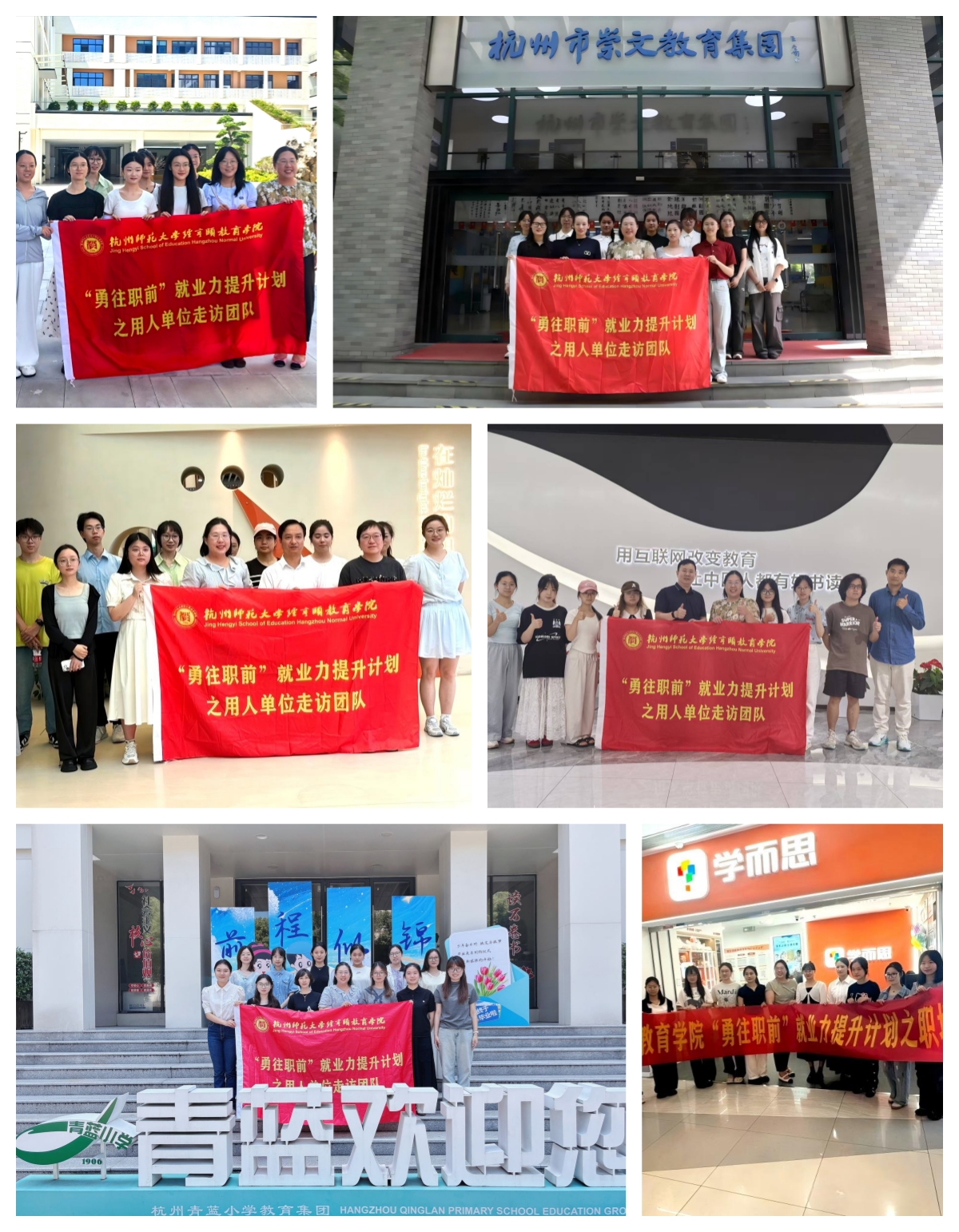 作为桃花族论坛 “勇往职前”就业力提升计划的品牌活动,用人单位暑期走访今年已进入第二年。继2024年暑期首办即获学生与用人单位一致好评后,6月27日至7月3日,学院老师再次带领实践团队,先后走访学而思、铭师堂等教育机构及崇文小学、五常小学、临平实验小学、紫金港小学、钱塘新区文海第二实验学校、青兰小学等多所知名小学,通过实地调研持续深化校企联动,为2026届毕业生职业发展铺路搭桥。