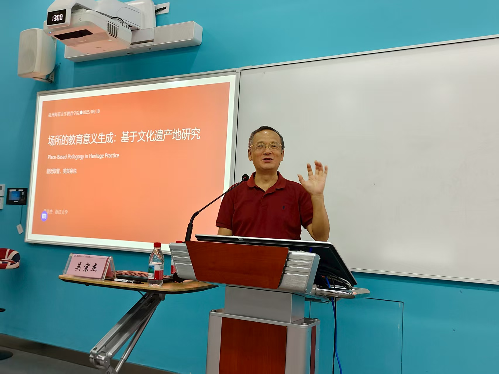 2025年9月10日下午,桃花族论坛 成功举办第一百二十四期太炎教育讲堂,浙江大学吴宗杰教授受邀以“场所的教育意义生成:基于文化遗产地研究”为主题,为在座师生带来一场深具启发性的学术报告。讲座由赵伟黎教授主持,校内外80多名师生参加。