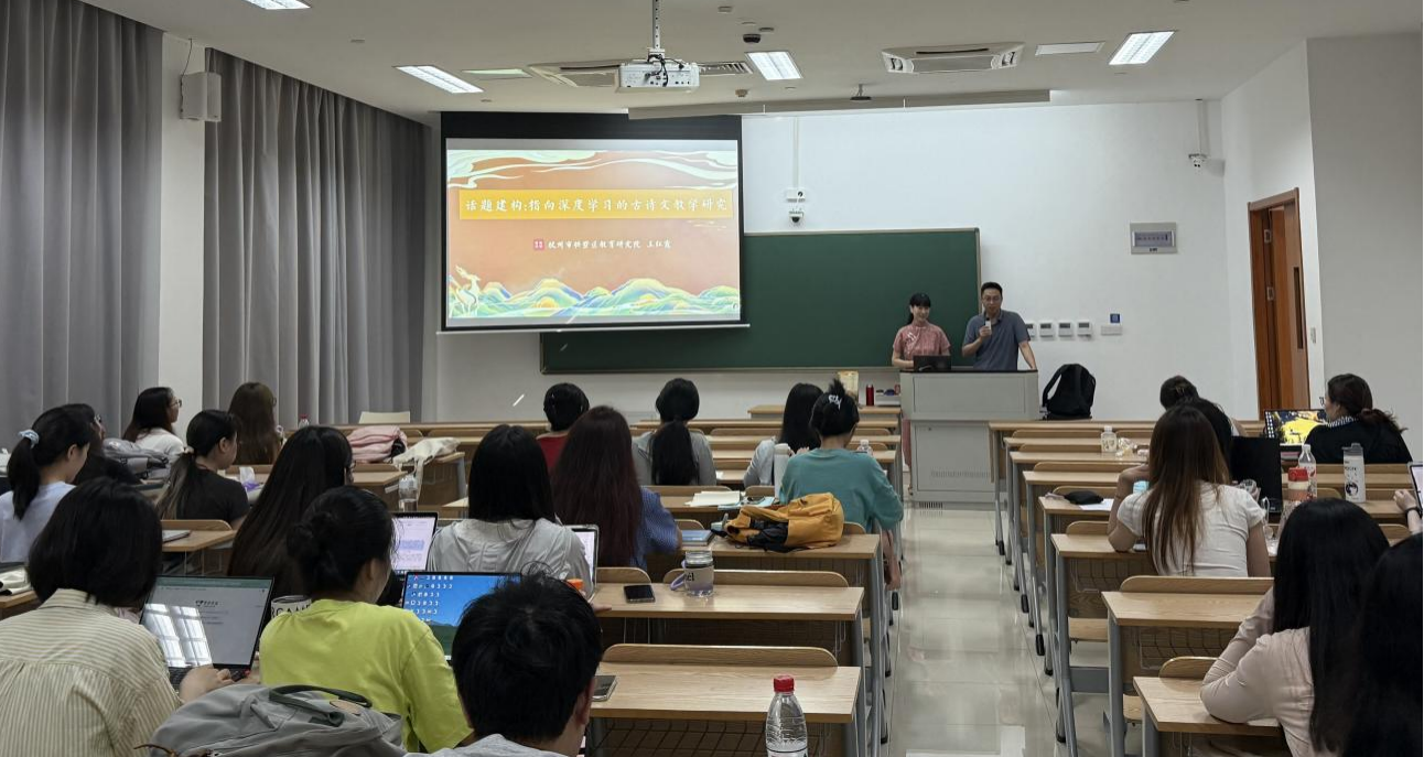 9月28日上午,杭州市拱墅区教育研究院王红霞老师应邀为桃花族论坛 2024级小学教育专业语文方向硕士研究生做“话题建构:指向深度学习的古诗文教学研究”专题讲座。本次讲座由饶鼎新副教授主持。