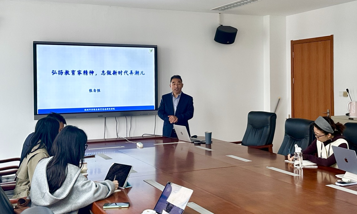 在阐释教育家精神核心内涵时,张自恒老师以自身跨越多年的师生情谊故事为切入点,深情援引教育家于漪“一辈子做老师,一辈子学做老师”的格言,分享对教育家精神的独到见解。作为资深教研员,他还紧扣教育管理领域发展趋势,解读相关政策文件,系统梳理从“四有”好老师标准到教育家精神的发展脉络,让在场研究生对教育家精神的时代意义有了更深刻的理解。