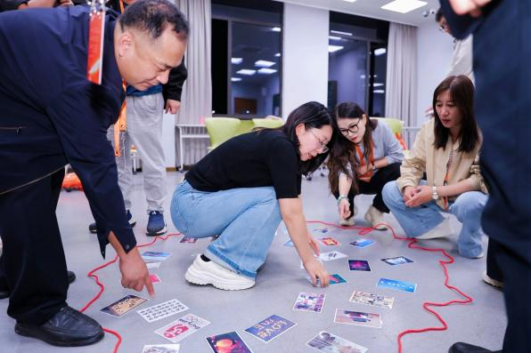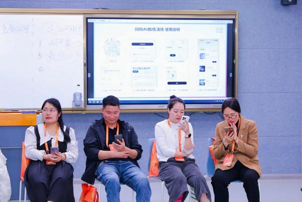 欢迎会后,老师们按照提前划分的三组,前往不同的活动室开启破冰团建。破冰团建第一个环节是《急速60秒》让乡村教师们在团建过程学会分享资源,意识到竞争是人的本能,而合作才是人的智慧;第二个环节是《问向AI教练演练》,让乡村教师初步感知AI技术如何支持育人场景中的沟通训练,传递“技术不是代替教师,而是赋能教师”的理念。通过破冰团建,使原本略显拘谨的氛围,在一个个真实的故事里逐渐升温,陌生的面孔慢慢变成了熟悉的 “同行人”。