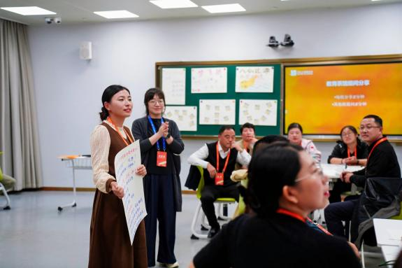 下午的 “教育茶馆” 采用圆桌形式,每个圆桌设 1 位 “桌主”,围绕评委组提前挑选的案例话题展开讨论,现场志愿者还贴心准备茶点,让交流更显轻松。在老师们各抒己见的现场感受到这群乡村教师既是孩子走出大山的“引路人”,也是是乡村教育的“坚守者”。桌与桌之间不时有老师起身 “串门”,把自己的经验分享给更多人,现场俨然一座“流动的教育智慧库”。