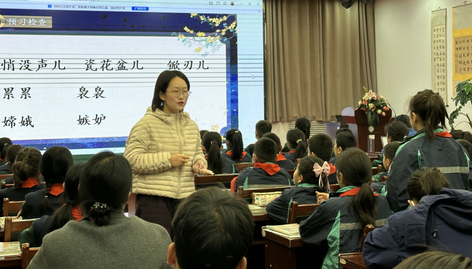 在阿克苏第七小学,郑腾雁老师执教《月迹》一课,以生动的教学设计引导学生深入文本,感受作家语言魅力。课堂从作者贾平凹的简介切入,通过对比朗读儿化音、品析叠词韵律、归类同偏旁词语等方式,激发学生对语言的兴趣。教学紧扣“月迹”主线,引导学生在品读中探寻月亮的足迹,体会动态之美,通过批注式阅读,鼓励学生自主发现并赏析文中细腻动人的描写。学生制作摘抄卡,进一步积累优美语句,提升书写与审美能力。整堂课节奏清晰,趣味与深度并存,充分体现了语文教学的语言实践与人文熏陶的融合。