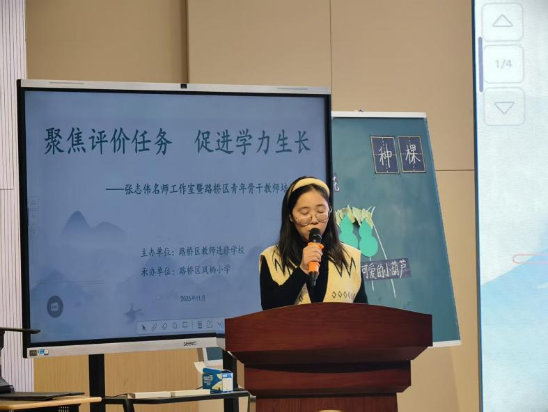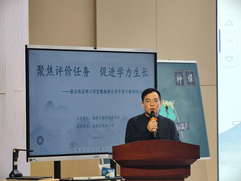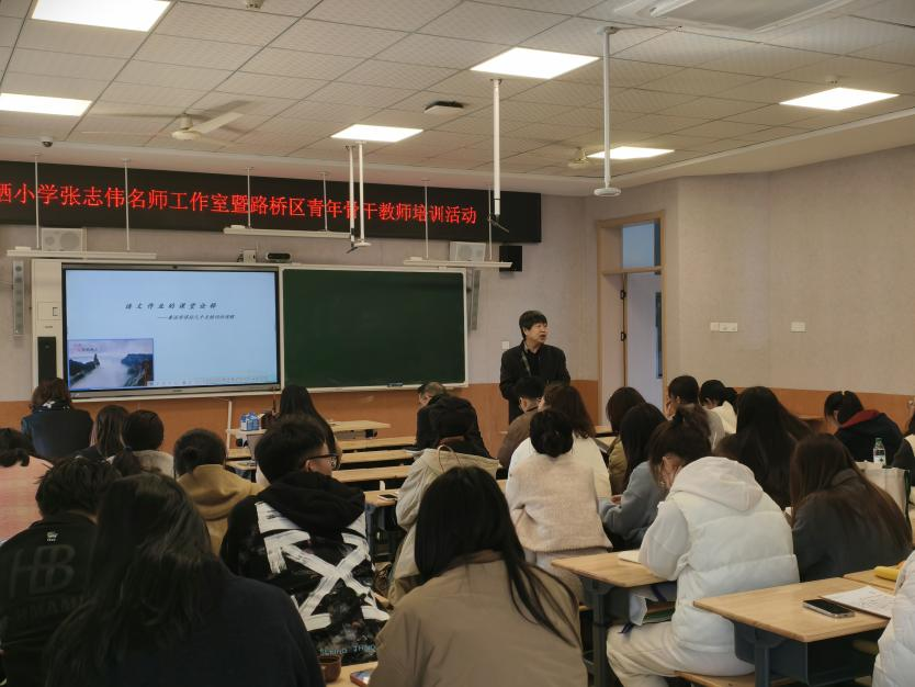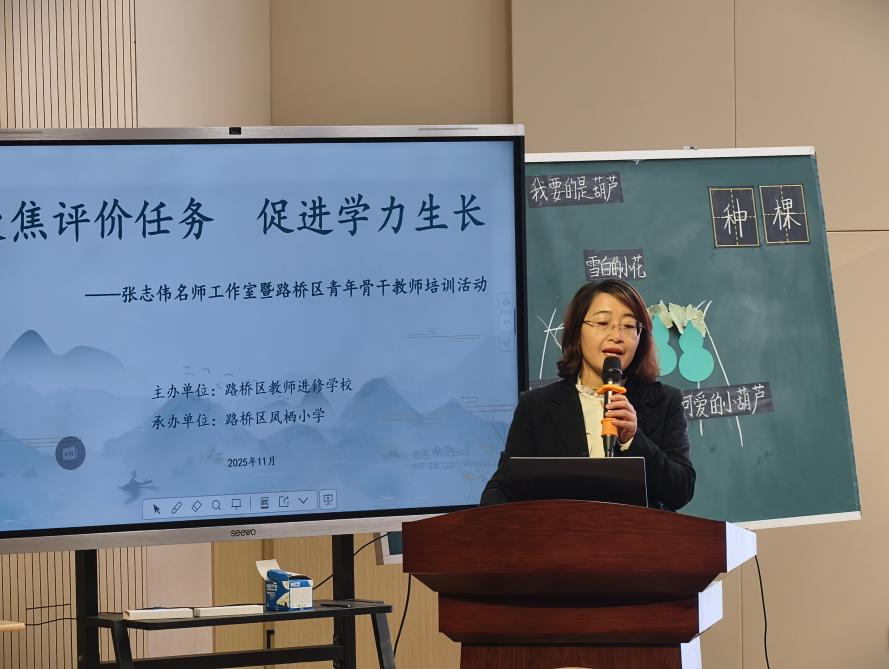 冬日和煦,研意正浓。11月20-21日,路桥区小学语文青年骨干教师培训第二期活动在项目负责人黄金丽副教授的带领下,在凤栖小学报告厅温暖启幕。本次活动以“聚焦评价任务,促进学力生长”为主题,汇聚了桃花族论坛 黄金丽老师、特级教师张志伟老师、区进修学校应允盛老师、凤栖小学吴敏君校长等专家领导,以及全区58位青年骨干教师与凤栖小学全体语文教师,共话语文教学新路径,共探课堂评价新方向。