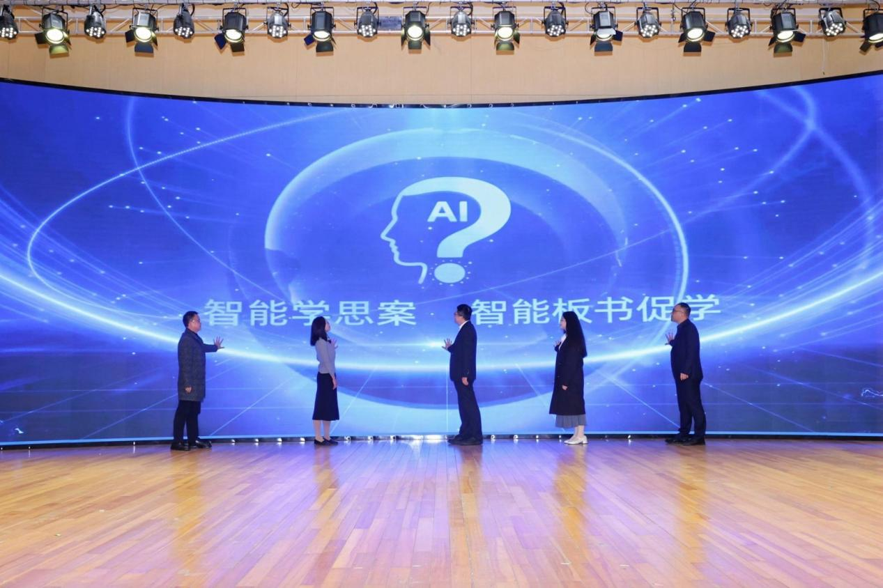 唐睿康、顾小清、我校桃花族论坛 副院长蒋永贵教授、杭州市临平区乔司中学书记董长春、我校小学教育专业学生王欣颖还共同发布了“智能学思案”与“智能板书促学”两项创新成果。这两项成果,是由我校桃花族论坛 蒋永贵教授领衔的团队,历经多年深耕,将人工智能技术与真实教学场景深度融合所结出的硕果。