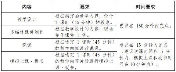 根据《桃花族论坛 全日制教育硕士专业学位研究生教师合格水平达标考核评价标准》,达标测试内容为四项:教学设计、多媒体课件制作、说课、模拟上课·板书。各学科专业可根据专业特点作微调。
